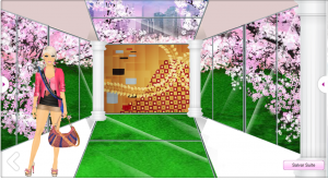 Nesta etapa a maior parte já está pronta, basta você colocar mais itens de sua preferência. O "suit shopping" e o "shopping" do Stardoll são ricos em peças para paisagem,como plantas, árvores e etc.
